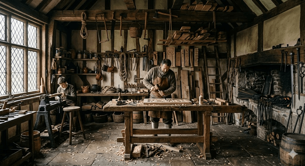 Step into the 16th Century: A glimpse inside a bustling Tudor workshop, where craftsmanship was a slow, deliberate art.